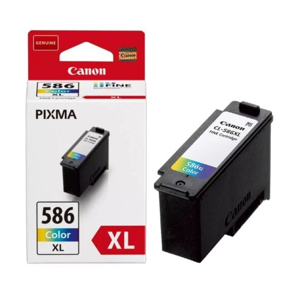 Canon CL-586XL Tri-Colour Ink Cartridge, High Yield. This genuine Canon dye-based ChromaLife ink is quick-drying and smudge-resistant, and promises long-lasting photos with rich, saturated colours.