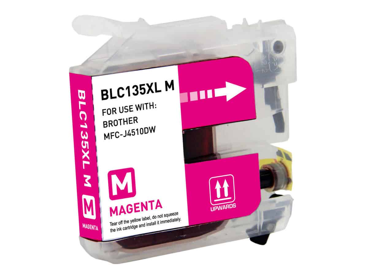 Premium ISO-Certified Brother LC135 Compatible Inkjet Printer Cartridge. High Yield compatible Magenta ink cartridge for Brother inkjet printers; an economical generic alternative to the genuine Brother product.